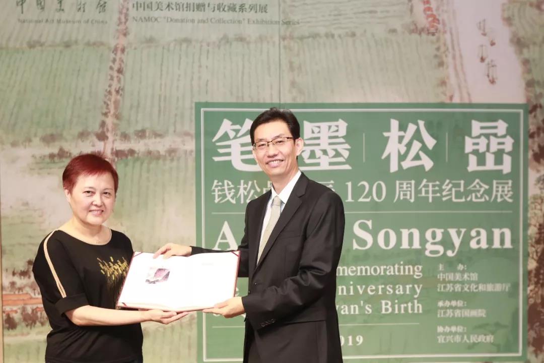 燕东升代表中国美术馆及吴为山馆长,感谢钱松喦先生的子女将钱先生创作的三幅重要作品捐赠给中国美术馆,为丰富国家艺术品馆藏增添了精品力作,并向家属代表钱春涛颁发了捐赠赠书。燕东升在致辞中表示,本展览不仅是展示钱松喦有感于时代、有感于生活而记录下的真与美,更在于鼓励和引导当下的画家“不忘初心”继承和发扬“深入生活,扎根人民”的优良传统,努力创作出更多无愧于伟大新时代的艺术精品,希望观众能通过这些作品,认识到“笔墨当随时代”的艺术统一性,坚定文化自信,凝聚民族力量,振奋民族精神,并预祝本次展览圆满成功!