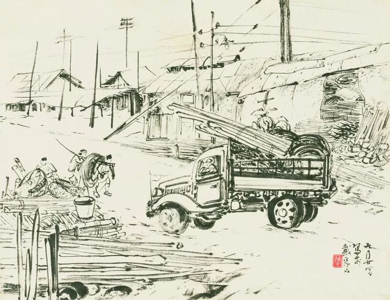 《戴家山速写》 29×37.5cm 50年代 纸本水墨 岭南画派纪念馆藏