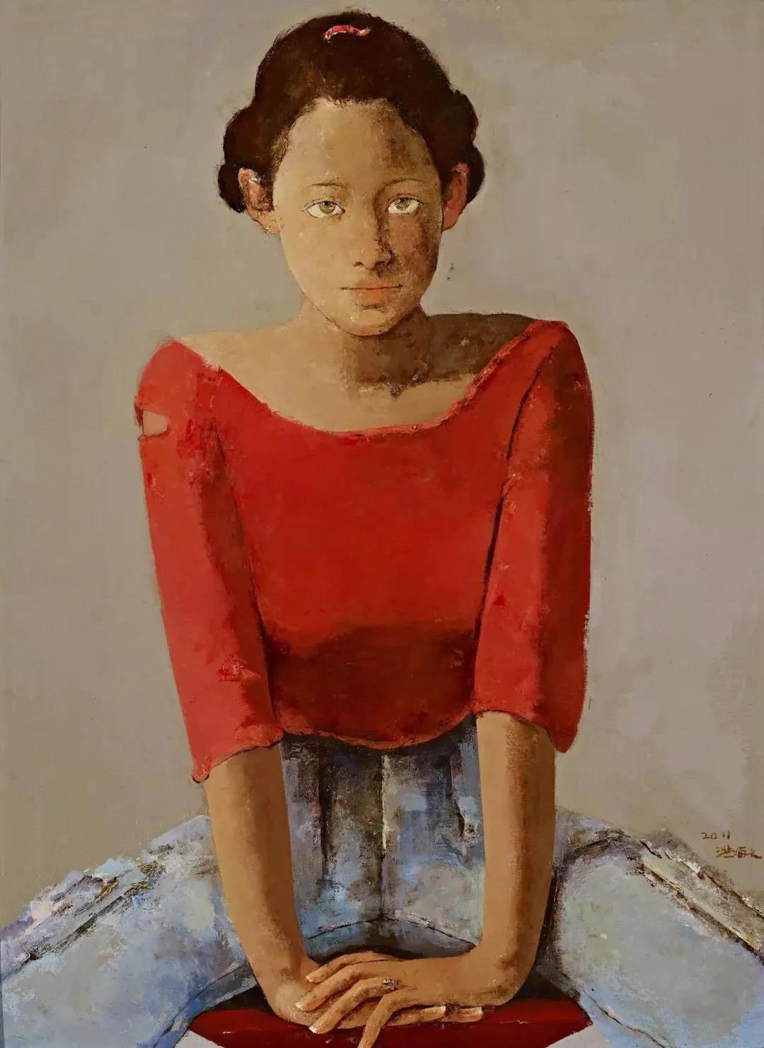 《红衣服的女孩 》布面油画 100x80cm 2011年