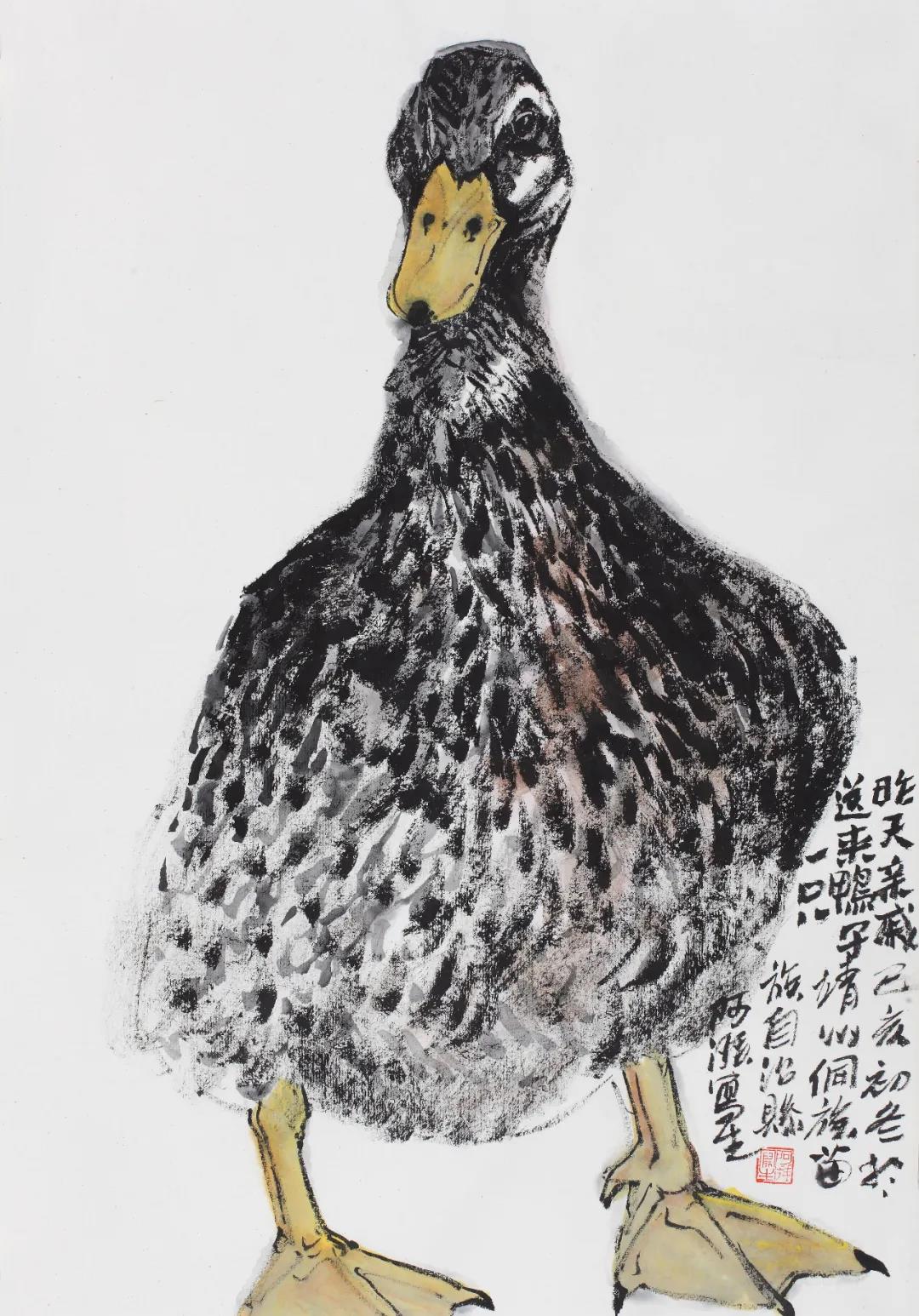 最近几年,阿湃在面临复杂的社会事务时,依旧完成了不少工笔作品,并在另一条路线——大写意花鸟画方面拓展着自己的实践。前者基本延续了之前的创作思路,但又隐隐被后者所影响。正如他毫不忌讳地宣称,他的写意花鸟画基本奉林丰俗先生为圭臬。然而比起在题材、构图、用笔上的相似,阿湃对林氏的追崇,更多的是在自然观上的共鸣。这不仅仅因为他们都来自潮汕这片充满人文情怀的土地,实际上,林丰俗田园牧歌式的美学观以及下笔追求“生机”“生动”“生涩”的笔墨观,都深深地影响着阿湃的创作理念。如果说阿湃在表达个人意趣方面已经成功地踏出了属于自己的一步,那么,林氏笔下那种鲜活的感染力以及隽远悠长的境界,无疑需要更多的时间积淀与自我观照。应该指出,在几个关系紧密的师辈中,阿湃其实与天生聪慧且思路敏捷开放的林墉最为相似;创作方法的稳重与扎实,则得益于亲炙方楚雄的教导;对生命力的追求,甚至可以在陈永锵身上找到影子;而画面上的典雅气息以及对近现代日本画的吸收,也与万小宁的艺术实践有所相似。但是林丰俗提供给阿湃,包括给许多后学特别珍贵的启示在于,作为从事绘画之人,如何将无关紧要之物排除在外,在俯拾即是的平常事物中,不断获得笔墨的暗示、启发和升华意境、格调的能力。这种超越时风、超越潮流甚至超越美术史进化论规律的自我修炼,是一条许多人可意会可言传却无法身体力行的孤高之路。偶尔如此并不难,难的在于数十年如一日如此。