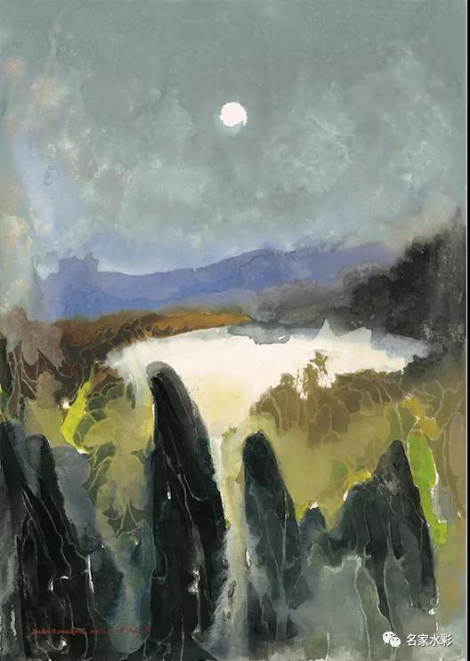 张闯《月夜》39x55cm 纸本水彩 2016年