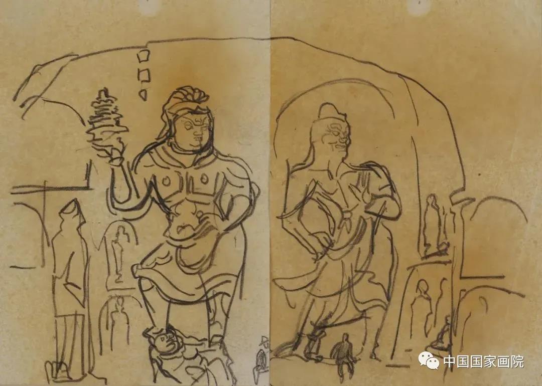 《龙门石佛》 1962年 纸本、铅笔 24cmx17cm 2012年入藏