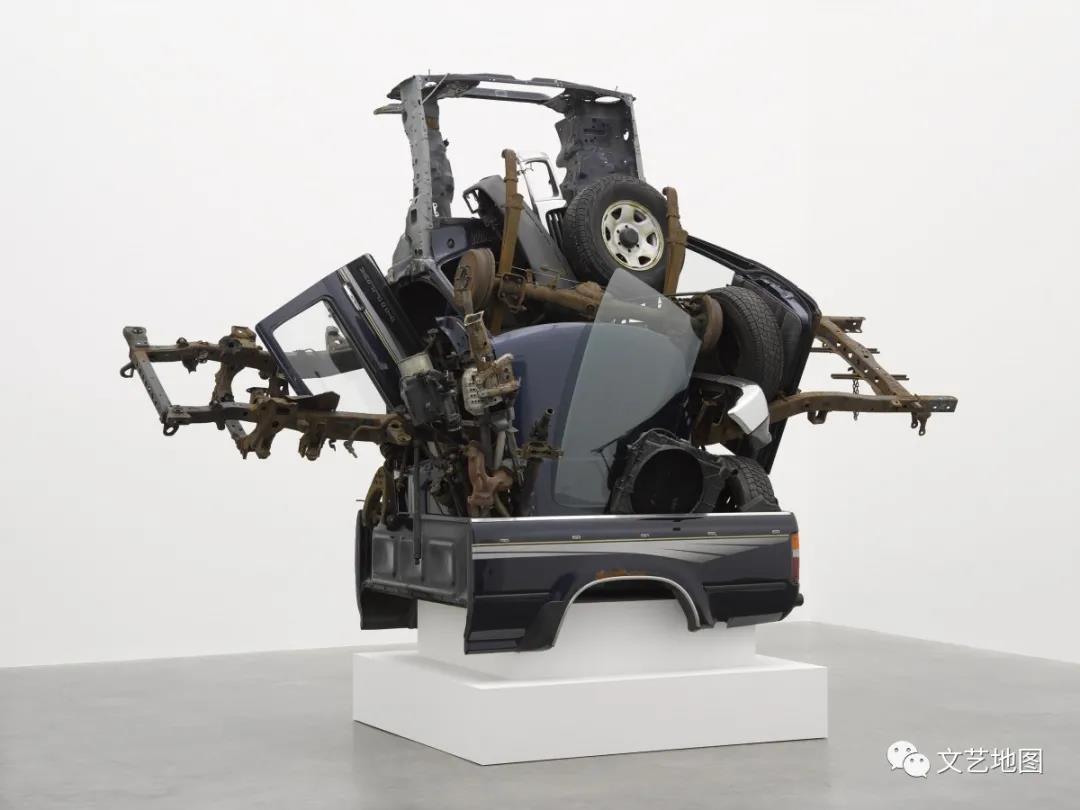 在其他作品中,藝術家處理的是美國工人階級的視覺肖像,在其作品中結合了皮卡車(在畫廊內部和外部),貼花卡車司機的圖案和燈箱標牌。在為達拉斯的發電站製作的雪佛蘭豪華車(2012年)中,她展示了一輛褪色的藍色皮卡車,床上鋪著明亮的藍色篷布,當從畫廊的二樓看時,它被蒸餾成漂浮物。單色。在高線博物館(High Line)委託創作的雕塑作品《無題》(2012年)中,她用磚砌了一輛黑色皮卡車的床,將其放在高架停車場上,從高架公園可以看到。作品融合併反映在城市環境以及整個美國的汽車文化中,將空置的停車場變成了雕塑的基座。