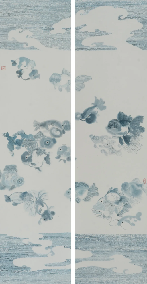 容艺文《畅游》185×100cm 纸本水墨 2020
