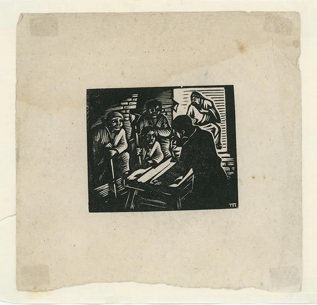 《魔鬼手下壮丁》,胡一川,1938年,延安,黑白木刻,8.25cm×10.5cm,广州美术学院胡一川研究所藏