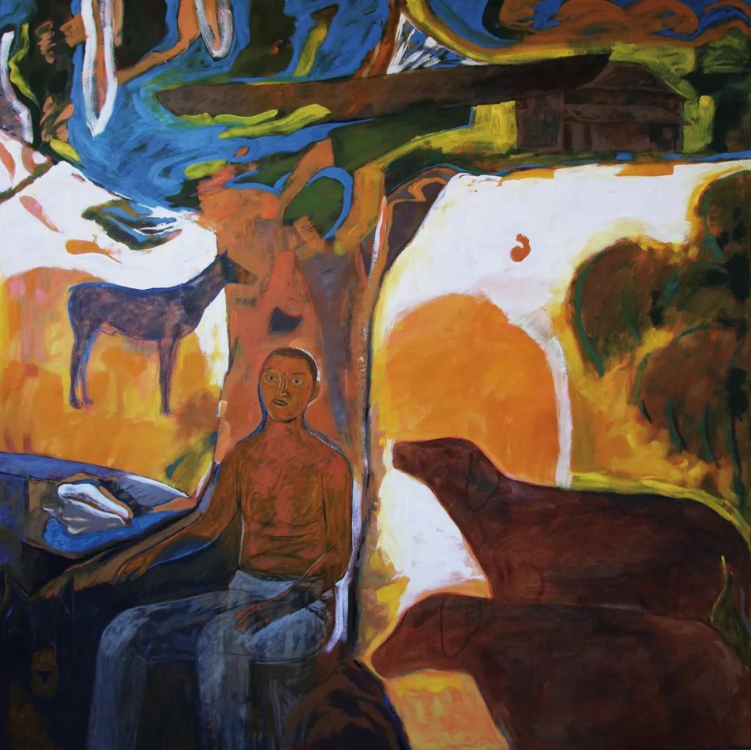 《Young Man with his Friends and Dreams》/ Crisanto Badilla / 150cm×150cm / Oil on canvas