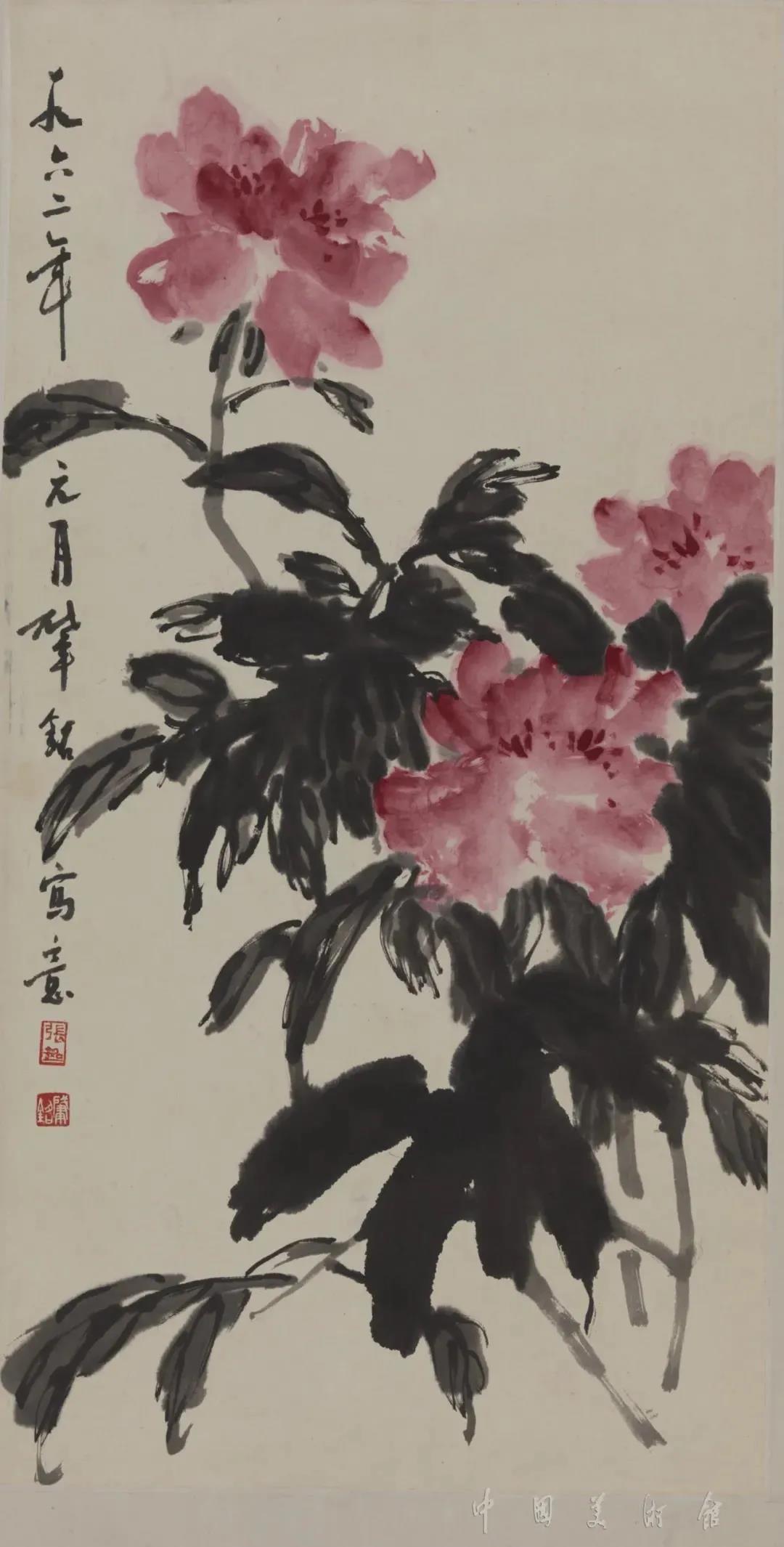张肇铭 《芍药》 国画 1962年 69.8×36.4cm