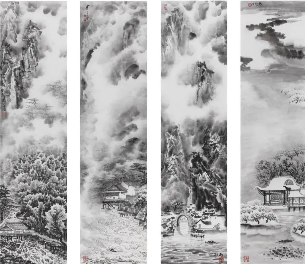《春夏秋冬》 纸本水墨 138cm×34cm×4 2019年内容合作: